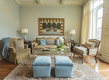 A historical property located in Evanston had a tragic fire that destroyed 90% of the home. I was hired for a complete redesign— finishes, color palette, bathroom fixtures, tile, lighting and furniture.