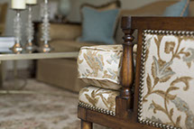 The Great Room is an architecturally beautiful room with high-coffered ceiling, arched windows and French doors, which open to the patio. This room was designed to serve as a gathering room for family and friends. It needed to feel intimate when the family of four sat together to watch television yet it also needed to expand when the family entertained their many friends.