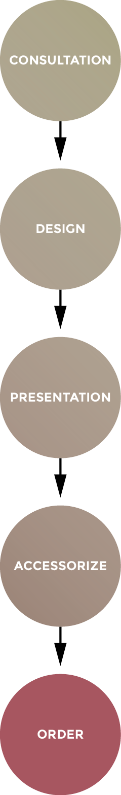 CONSULTATION: Our initial meeting is important in many ways. First we have the opportunity to meet one another! We want to be sure we can establish a comfortable working relationship. You will begin to describe the scope of your project and your time frame. I will ask you many questions regarding your space issues, needs, goals, style, budget etc.